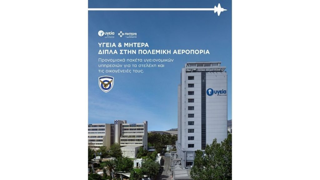 Με αίσθημα ευθύνης και με σαφή προσανατολισμό στην ποιότητα και την αξιοπιστία, το Νοσοκομείο ΥΓΕΙΑ προχωρά σε μια πρωτοβουλία στήριξης προς την Πολεμική Αεροπορία, προσφέροντας προνομιακά πακέτα παροχών προς τα εν ενεργεία και εν αποστρατεία στελέχη της, καθώς και τις οικογένειές τους.